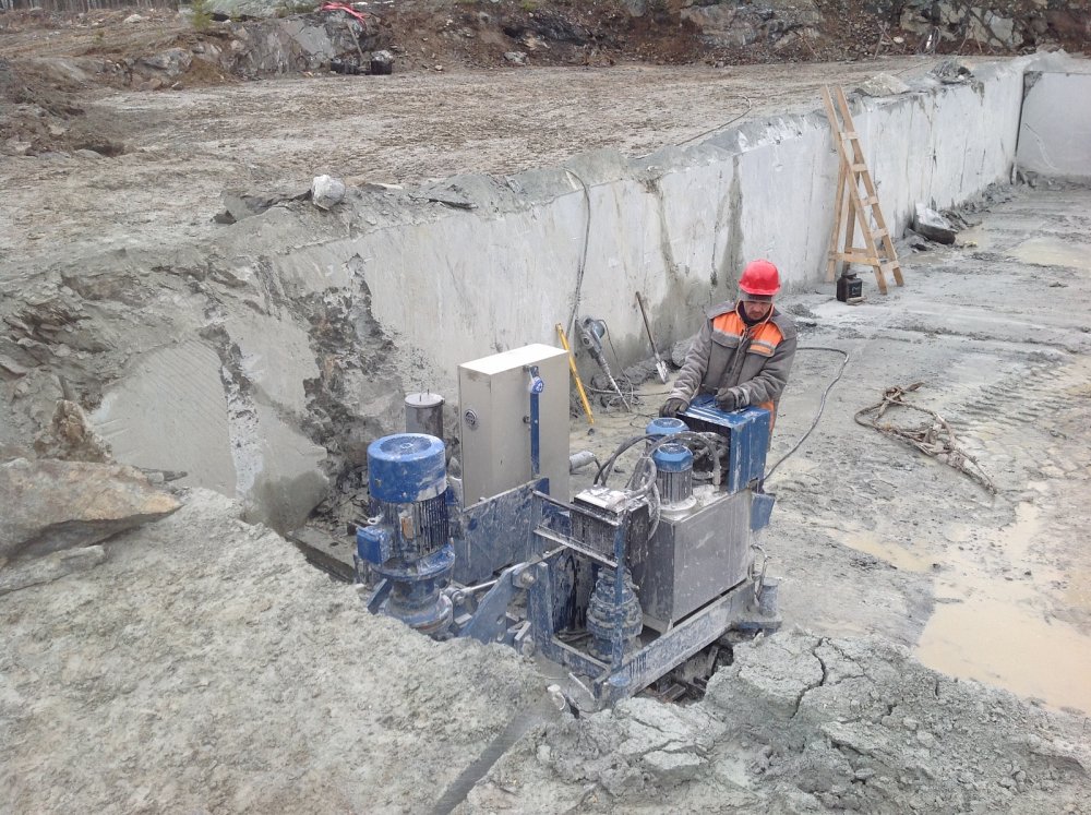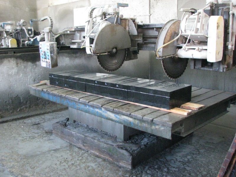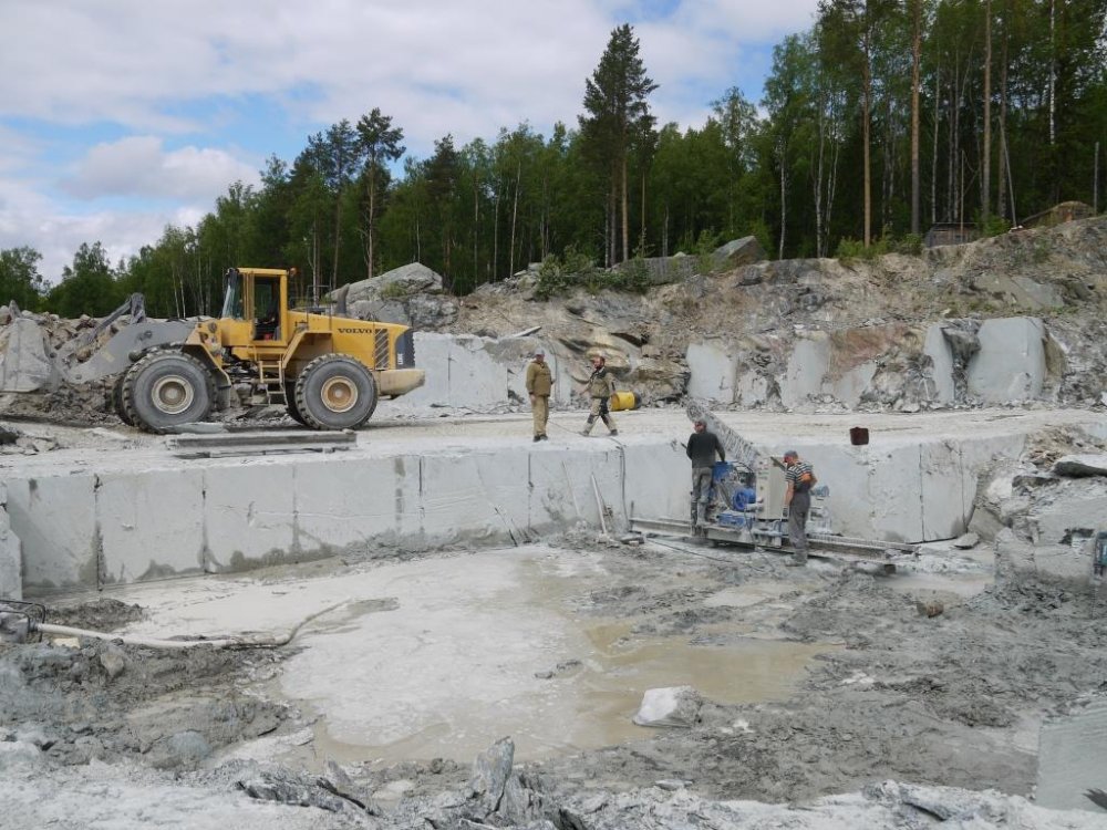 Добыча камня производиться способом выпиливания.Производство в черте города