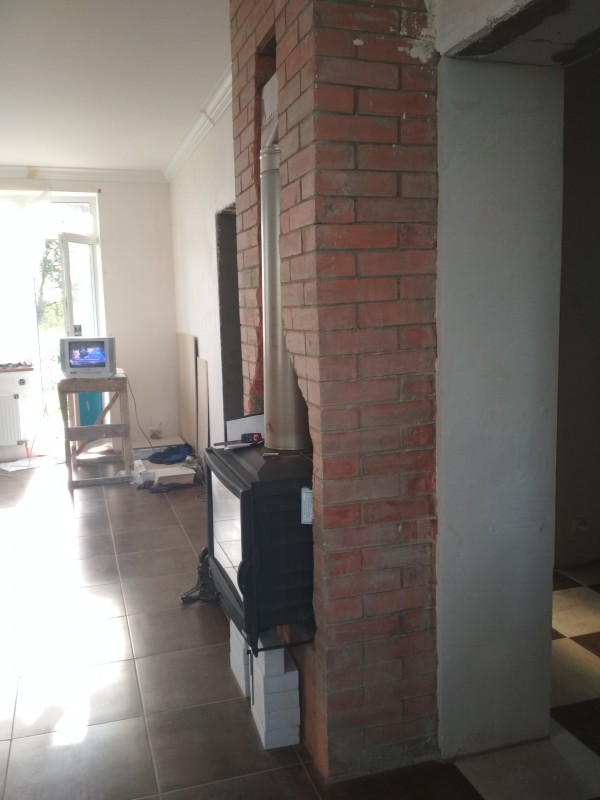 Облицовка каминной топки выполнена по индивидуальному заказу.