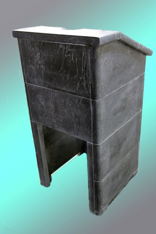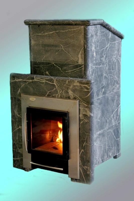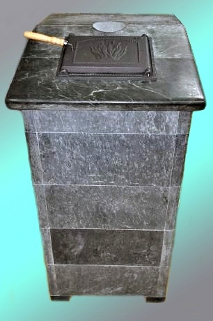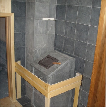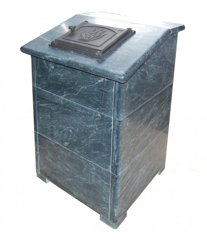 Облицовка с наклонной крышкой и дверцей для подачи воды на камни сверху.