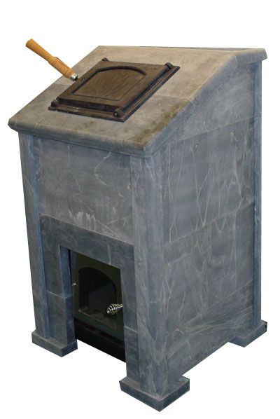 Облицовка с наклонной крышкой и дверцей для подачи воды на камни сверху.