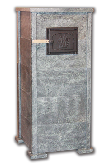 Облицовка с горизонтальной верхней крышкой и дверцей для подачи воды на камни сбоку.